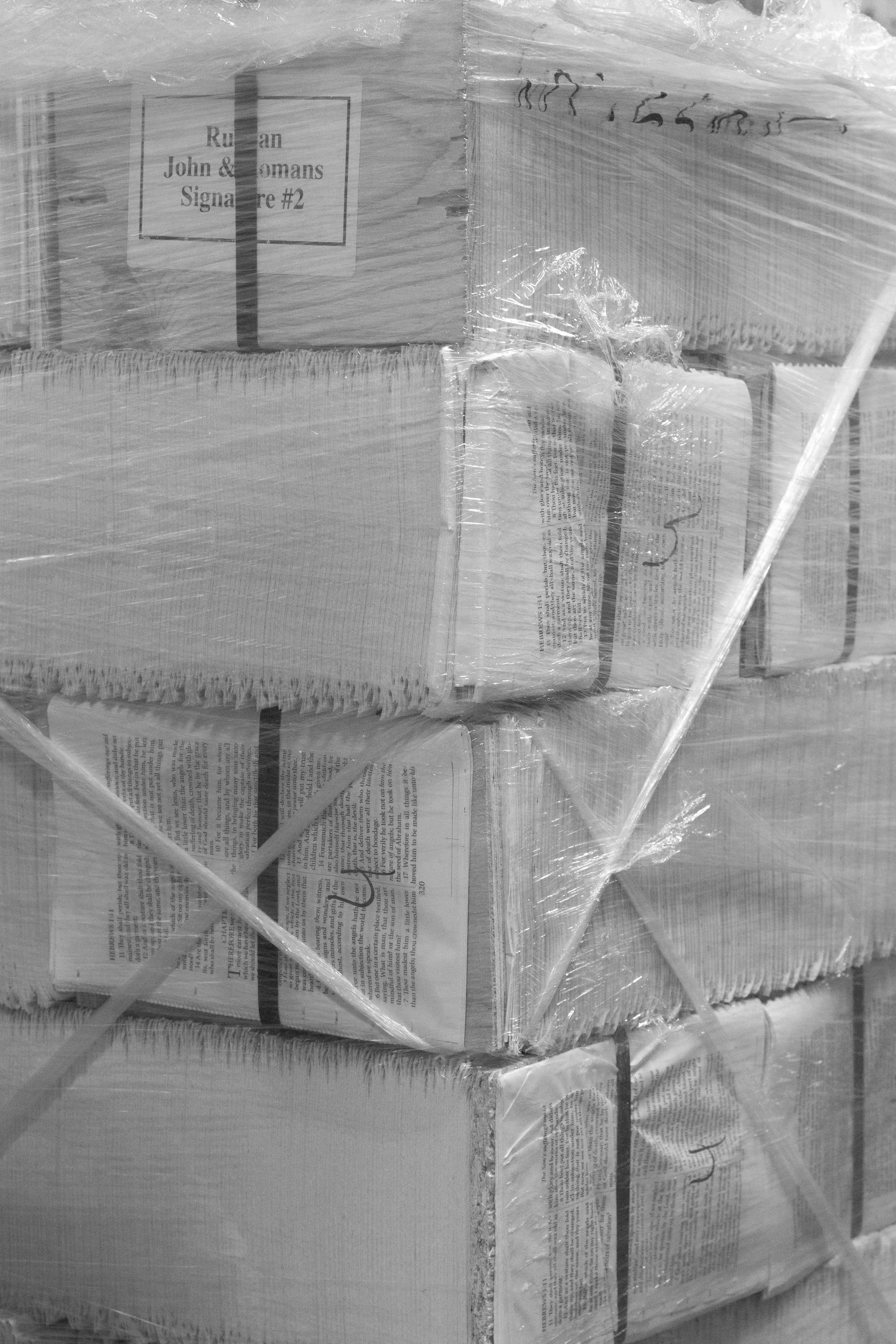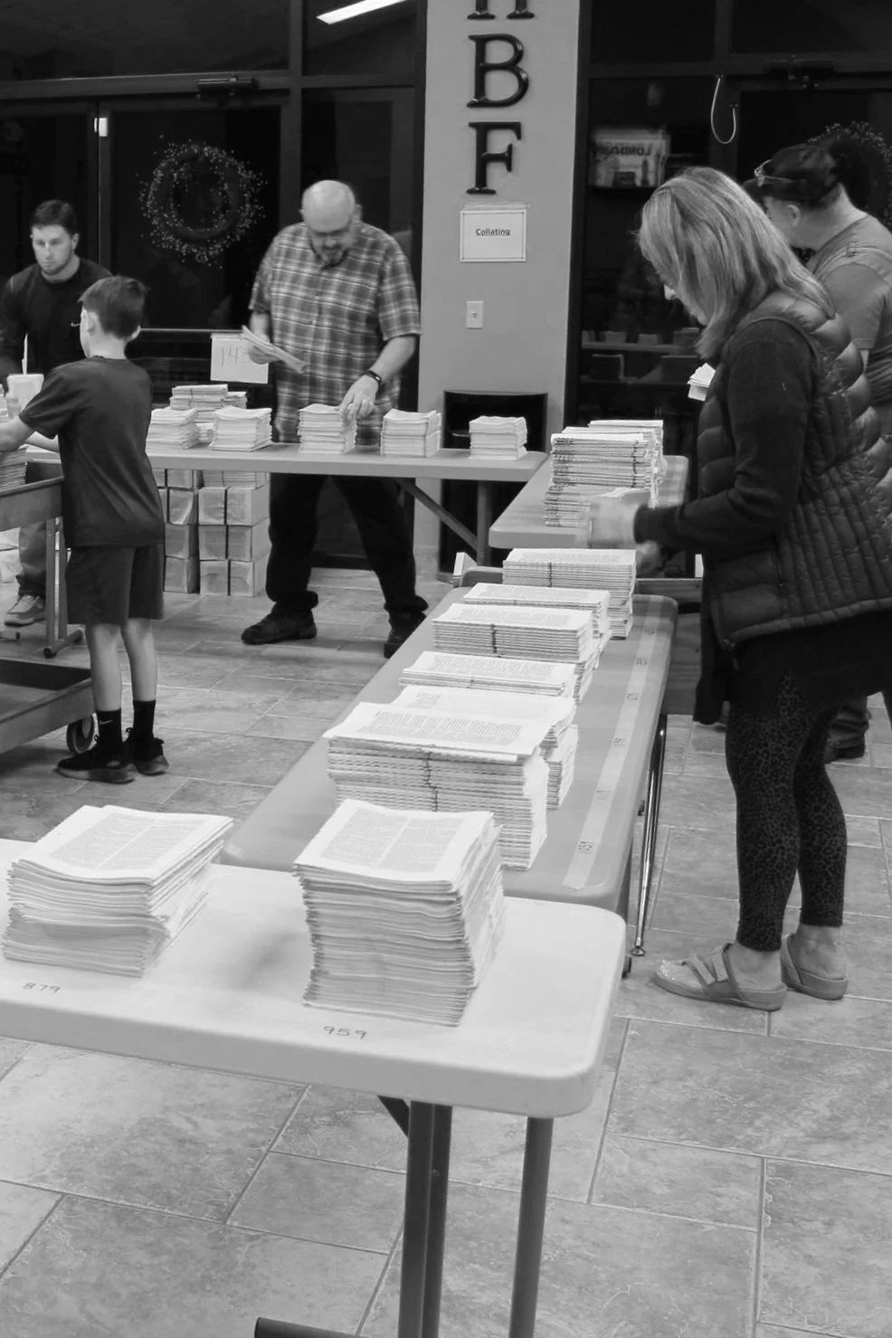If you have not participated in years past, you won't want to miss an opportunity to see the Bible go from packets of pages called signatures to completed Bibles boxed up and ready to be sent to someone who has never had a Bible of their own.
